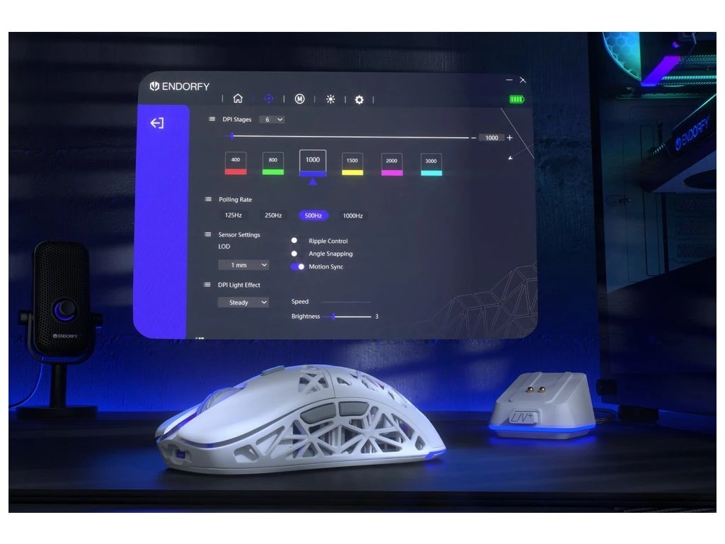 Bezdrátové připojení pomocí rozhraní Bluetooth nebo miniaturní USB adaptér zajistí kompatibilitu s rozmanitými druhy zařízení, jako jsou notebooky, počítače, herní konzole nebo třeba chytré TV. Samozřejmostí je také připojení pomocí USB kabelu. Unikátní děrovaný design je nejenom stylový na pohled, ale tento prodyšný povrch také zlepšuje proudění vzduchu. Další výhodou je mimořádně nízká váha pouze 69 g celé myši, takže nad hrou získáte dokonalou kontrolu hned s prvotním uchopením. Součástí myši je také samostatný nabíjecí dok, takže o výdrž baterie si nemusíte dělat starosti a během okamžiku a bez námahy můžete začít s nabíjením.
