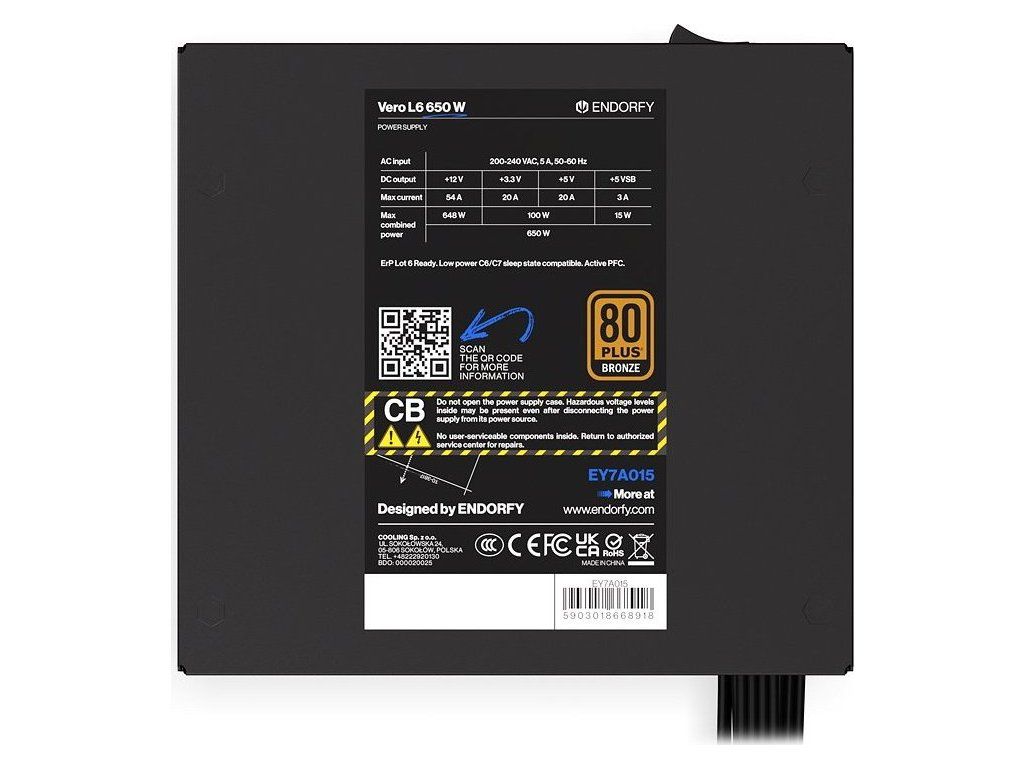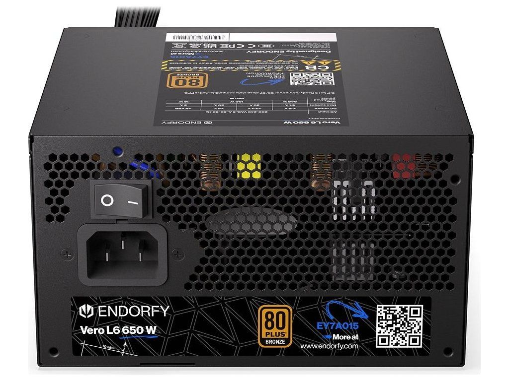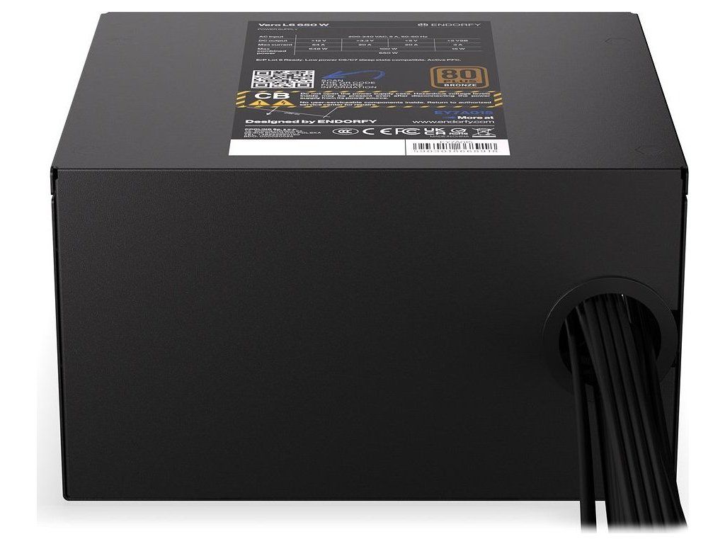 Napájecí zdroj Endorfy Vero L6 Bronze 650 W je navržen tak, aby spolehlivě a v tichosti utáhnul i výpočetně náročné PC sestavy. Díky certifikaci 80 PLUS Bronze a Cybenetics Silver dosahuje vysoké účinnosti, takže nebudete platit zbytečné účty za elektřinu. Současně podpoří stabilní napájení, ať už se jedná o herní, nebo pracovní počítač.