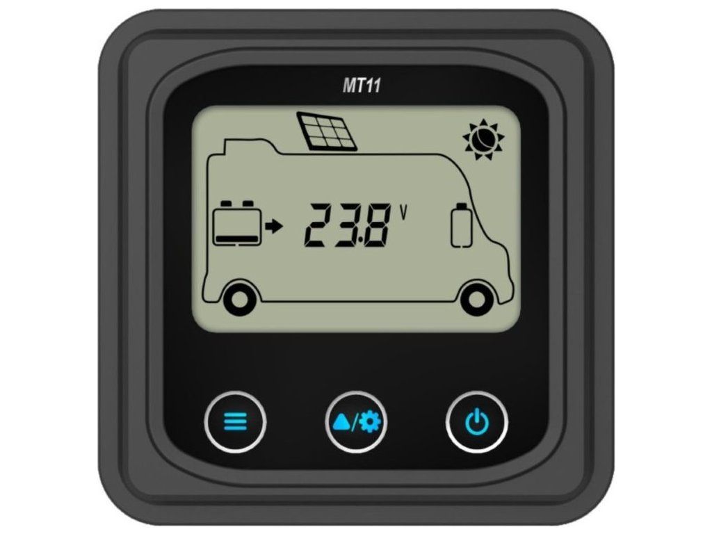 EPEVER MT11Externí displej řady MT je příslušenství, které je kompatibilní s regulátory řady DuoRacer. Můžete monitorovat provozní data a pracovní stav regulátoru pomocí LCD. Na externím displeji můžete procházet parametry regulátoru, nastavovat typ baterie a jednotky teploty a mazat vygenerovanou energii. Je vhodný pro RV, karavany, lodě atd.