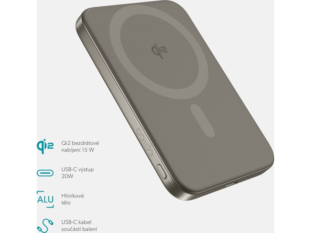 Epico Qi2 5000mAh Alu Mag+ PowerBanka EM51 -titan