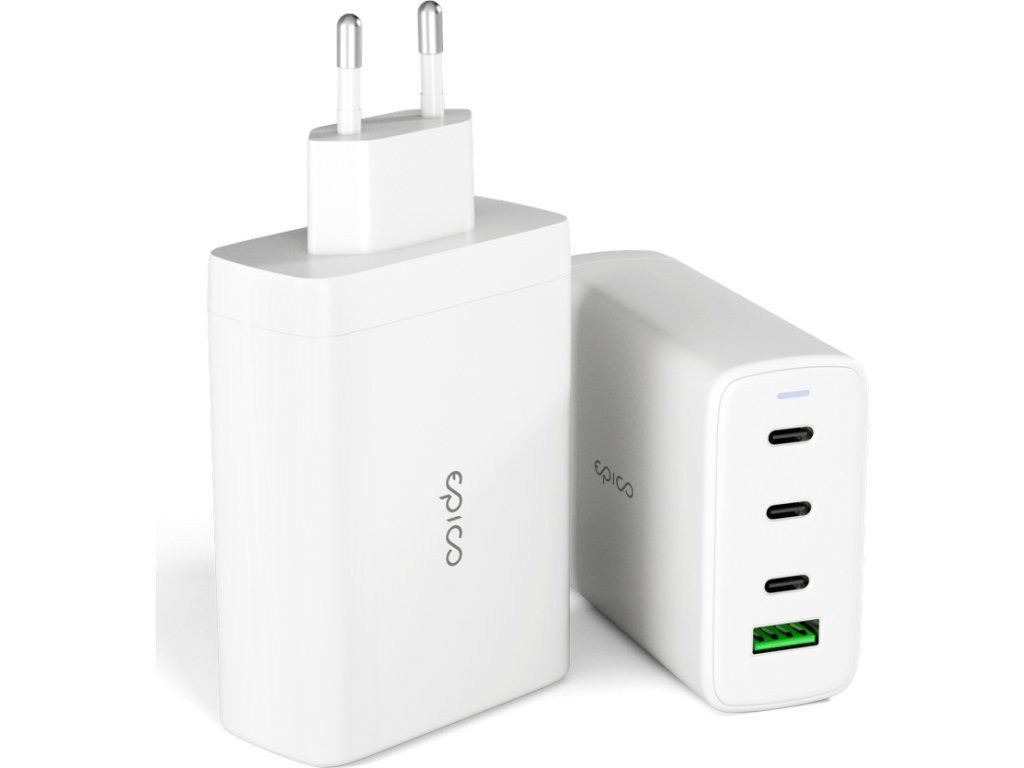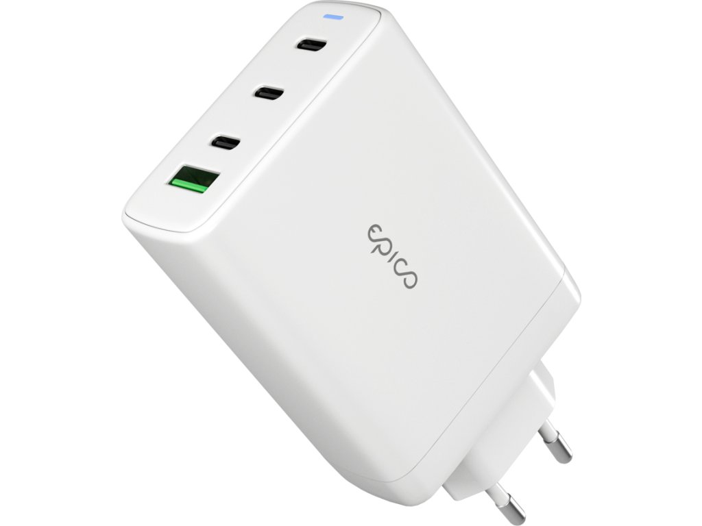 Síťová nabíječka Epico UltraBoost GaN 140W nabízí bleskurychlé nabíjení. S výkonem až 140 W dokáže snadno napájet i ty nejnáročnější notebooky, jako je MacBook Pro, stejně jako tablety, telefony a další zařízení – vše z jednoho kompaktního adaptéru. Technologie Power Delivery se postará o rychlé a efektivní nabíjení. Díky třem USB-C portům (140 W) a jednomu USB-A portu (15 W), zvládne tento adaptér nabíjet až 4 zařízení najednou.
