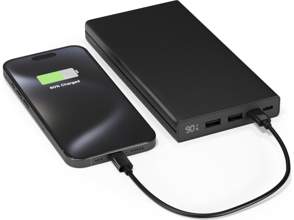 Tělo powerbanky je vyrobeno z odolného hliníku, který zaujme elegantním designem a zároveň efektivně odvádí teplo. Praktický LED displej vám poskytne přehled o zbývající kapacitě baterie, takže vždy víte, kolik energie máte k dispozici. Díky dvěma USB-C a dvěma USB-A portům můžete pohodlně nabíjet více zařízení současně. Součástí balení je navíc USB-C kabel o délce 50 cm, který zajistí snadné připojení.
