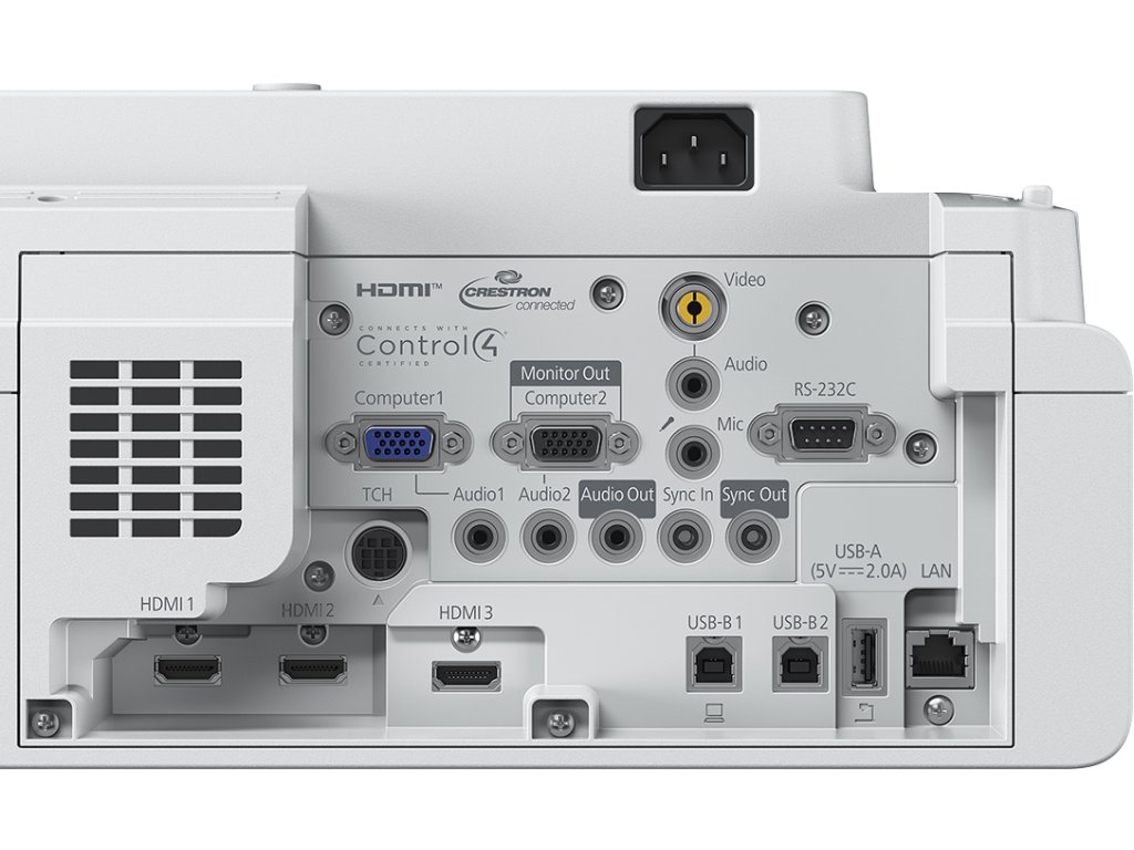 Rozhraní: USB 2.0-A (2x), RS-232C, Ethernetové rozhraní (100 Base-TX / 10 Base-T), bezdrátová síť LAN IEEE 802.11a/b/g/n/ac (WiFi 5), VGA vstup (2x), VGA výstup, HDMI vstup (3x), kompozitní vstup, Miracast, audiovýstup, stereofonní konektor mini-jack, audiovstup (3x), USB 2.0 typ B (pouze servis) (2x), Wi-Fi Direct, vstup pro mikrofon