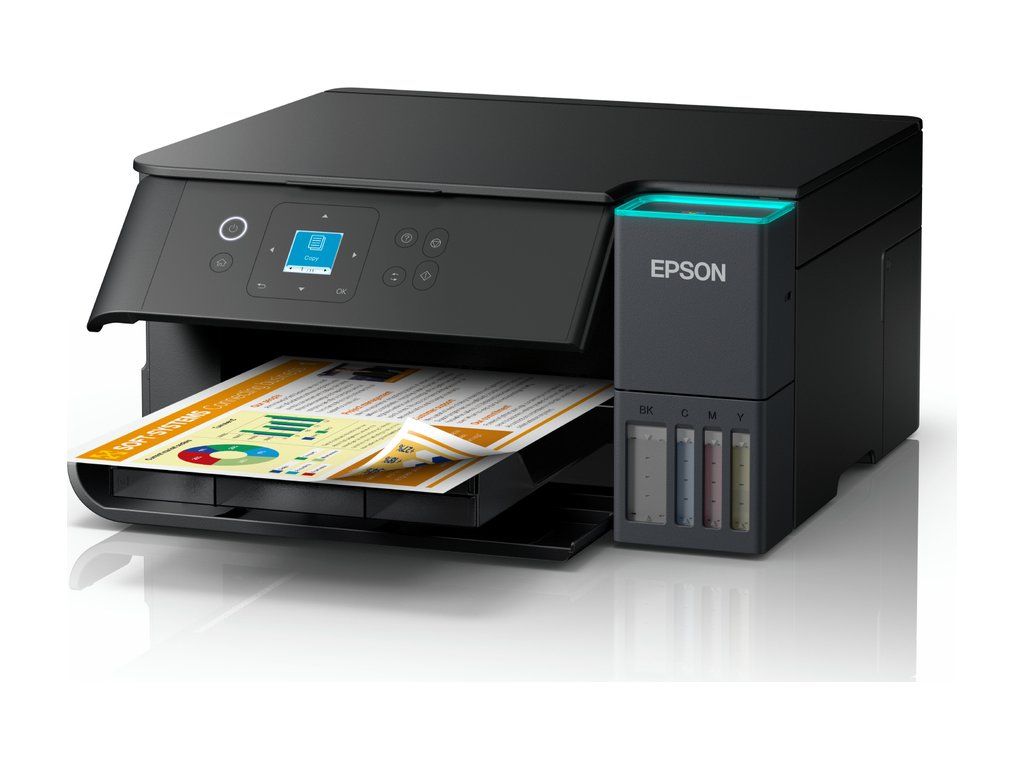 Multifunkční barevná inkoustová tiskárna formátu A4 nabízející funkce tisku, skeneru a kopírky. Rozlišení tisku je až 4800 × 1200 DPI a rozlišení skeneru až 1200 × 2400 DPI. Rychlost tisku činí 8 stran barevně a 15 stran černobíle za minutu. Potěší také zásobník na papír s kapacitou 100 listů. Ovládání tiskárny je velmi snadné díky 1,44" LCD displeji s tlačítky. Umístění nádržek na inkoust v přední části tiskárny umožňuje snadný přístup při doplňování inkoustu i přehled o jeho stávající hladině. Přináší také vylepšený systém doplňování inkoustu, který je navržen tak, aby ve všech fázích minimalizoval riziko rozlití inkoustu. Tiskárnu je možné připojit jak drátově přes USB, tak bezdrátově skrze Wi-Fi.