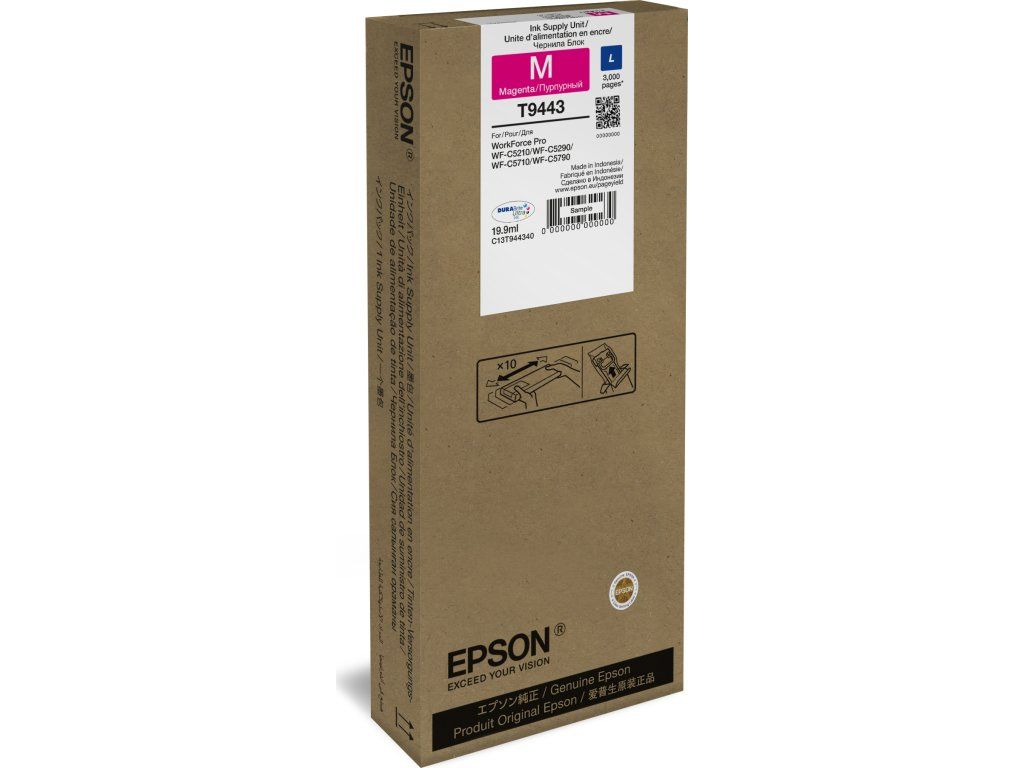 Epson T9443Značková náplň pro vaši inkoustovou tiskárnu Epson zajistí maximální kvalitu tisku.