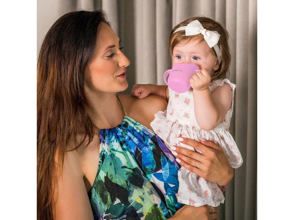 Hrneček na učení pití je přizpůsobený anatomickým a psychofyzickým možnostem dítěte, které se učí samostatně pít z otevřené nádoby. Je to další krok k tomu, aby se naučilo krmit se samostatně. Je ideální náhradou lahvičky nebo hrnečku s pítkem.
