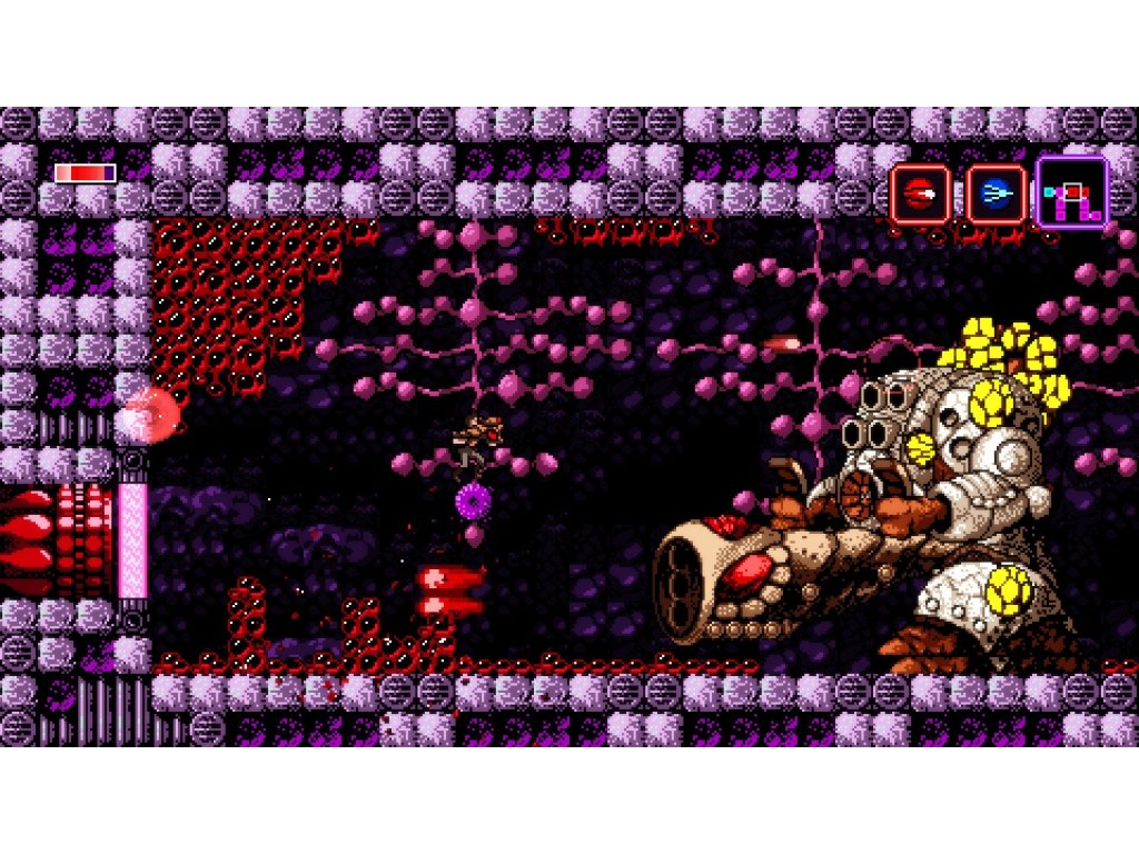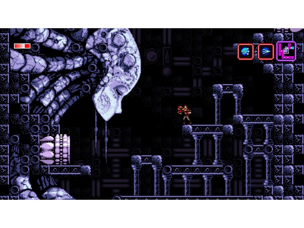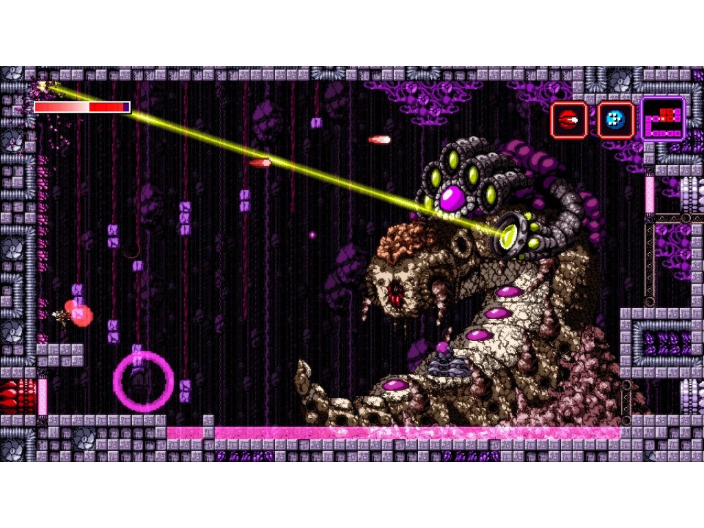 Vědec Trace se po nezdařeném experimentuobjeví na neznámém a velice nepřátelskyvyhlížejícím místě. Ze samoty ho vyrušítajemný ženský hlas a oznámí mu, že vevedlejší místnosti se nachází zbraň, kterou si bezpodmínečně musí vzít. ProtožeOn přichází… Axiom Verge je indie 2D plošinovka grafickým pojetím silně odkazující na éru 8bitových her pro Nintendo. Vychází z klasického metroidvania konceptu. Hlavní hrdina objevuje různé upgrady aspeciální zbraně, které mu umožňují prozkoumávat stále další části rozlehlého komplexu. Inovativním prvkem v rámci žánru jsou deníkové zápisy, které jsou poschovávané napříč lokacemi a hráče seznamují s tajemstvími univerza.