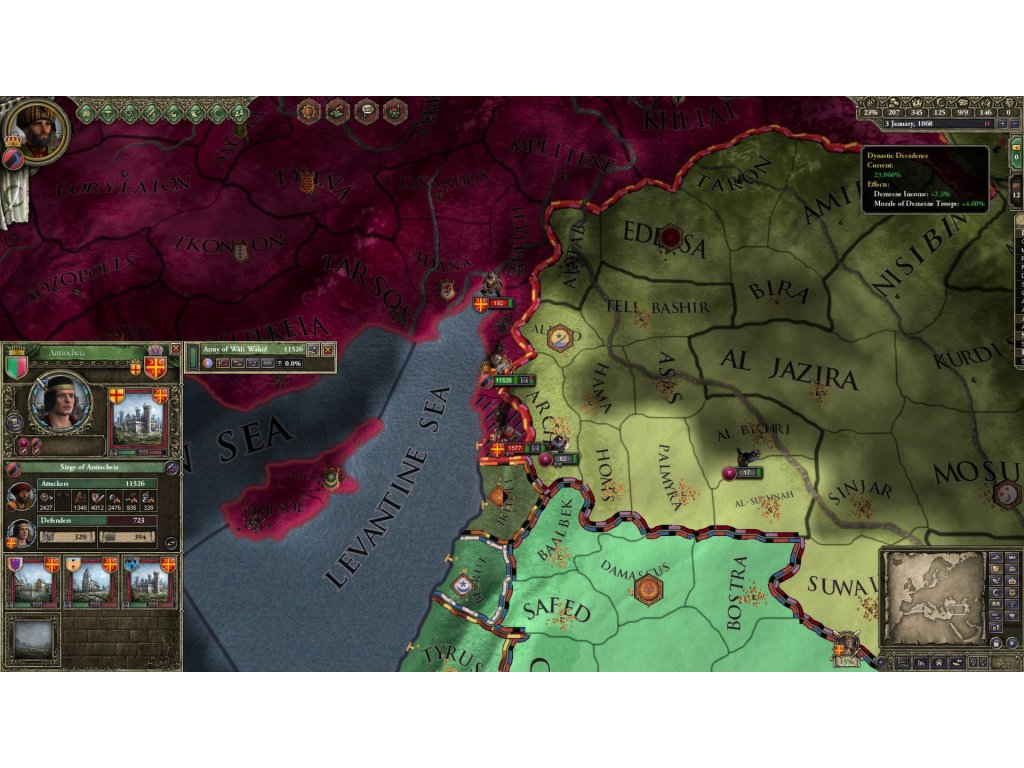 Možná se temná doba chýlí ke konci, aleEvropa je stále v chaosu. Drobní páni bojují proti obtěžování králům, kteří se snaží prosadit kontrolu nad svými rozdrobený říšemi. Papež žádá křižáckou výpravuna ochranu křesťanů ve Svaté zemi, i když se vzdává kontroly nad investicí biskupů - a jejich bohatstvím. Nyní je ten čas. Rozšiřte své panství a zajistěte budoucnost své dynastie. Naplňte svou kasu,ustanovte vazalů, vykorente zrádců a kacířů, zavádějte zákony a komunikujte sestovkami šlechticů, z nichž každý má svou vlastní agendu. Dobrý pán bude vždy potřebovat přátele, kteří by ho podpořili.Ale pozor, věrní vazalové se mohou rychle změnit na trpkých soupeřů a někteří nemusí být takoví spolehliví, jak se zdá... Buďte připraveni a zvyšujte svou prestiž, dokud vám svět nebude v šoku šeptat. Máte na to, abyste se stali křižáckýmkrálem?