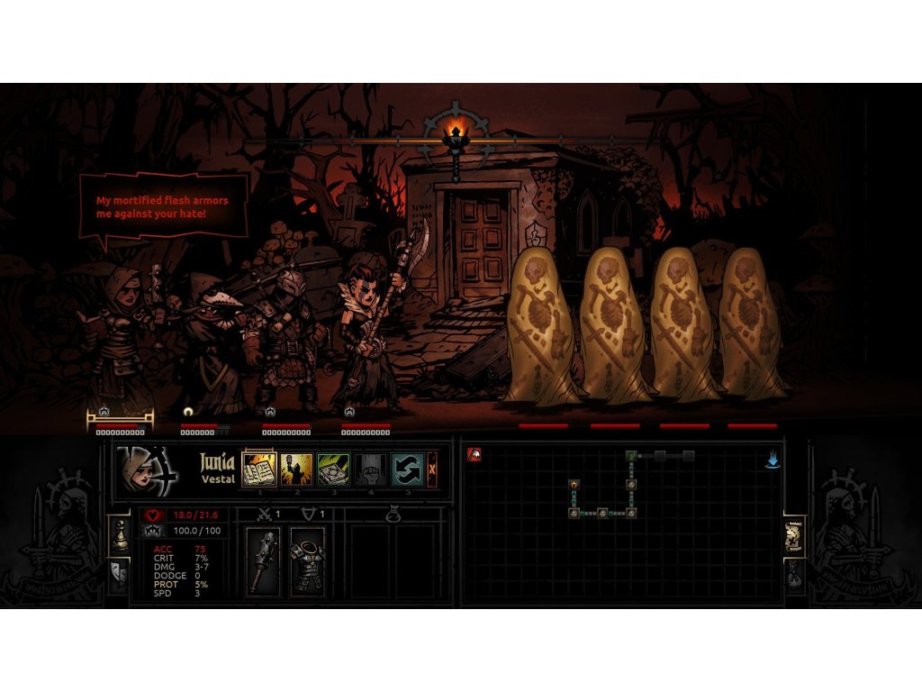 Darkest Dungeon je náročné goticky založené roguelike tahové RPG, které klade důraz na psychologickou náročnost dobrodružství hrdinů. Najímejte, trénujte a veďte tým chybných hrdinů napříč spletitýmilesy, zapomenutými tunely, kryptami a ještě dál. Budete bojovat proti nepředstavitelným nepřátelům, ale také stresu, hladu, nemocem a všudypřítomné temnotě. Odhalte podivuhodné tajemství a postavte hrdinů proti škále strašidelných příšer sinovativním a strategickým tahově založeným systémem soubojů. Výrazný malovaný styl grafického provedení. Inovativní tahově založený systém soubojů. Vyprávění,které oslaví vaše úspěchy ... a prohry.16 hratelných povolání. Klasické roguelike prvky jako permanentní smrt, procedurální generované dungeony a možnosti novéhry.