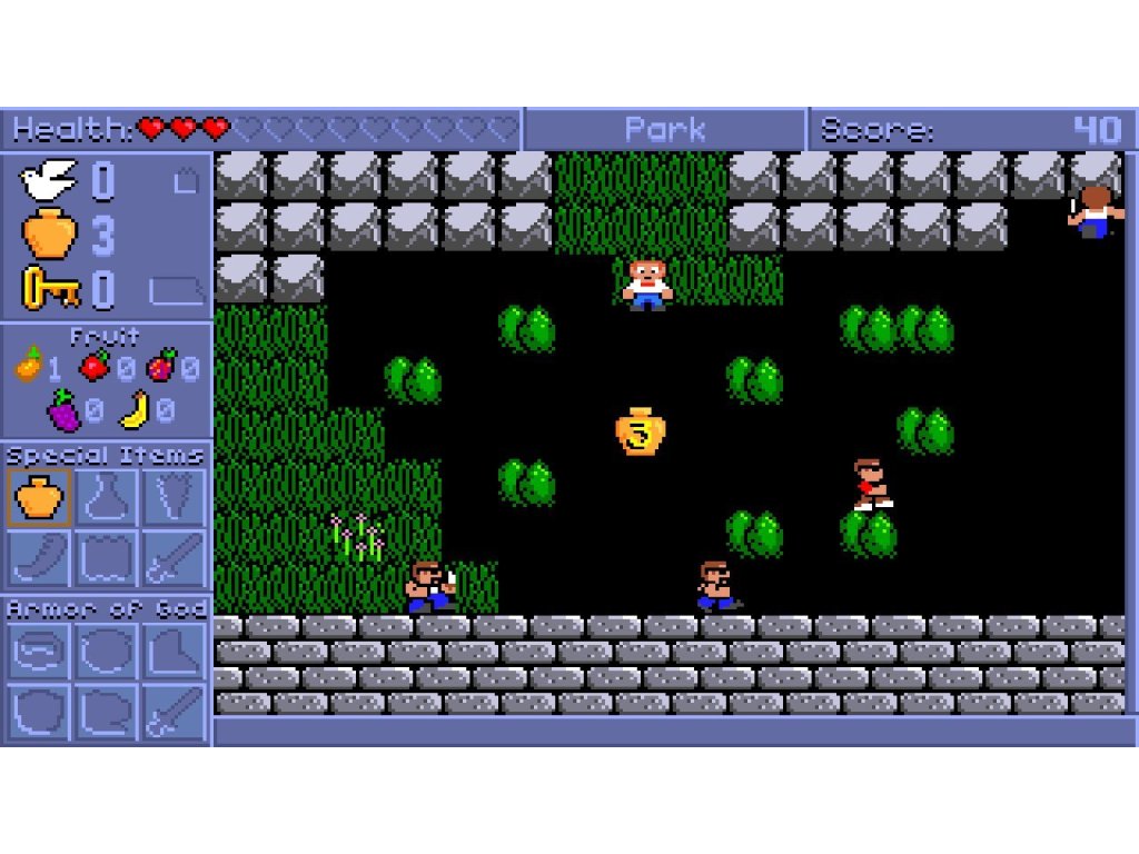 Spiritual Warfare & Wisdom Tree Collection jako režijní akční hra Jste voják v armádě Pána. Prozkoumejte oblasti moderního města, když se pokoušíte shromáždit kompletní zbroje Boží. Po cestě se setkáte s darebnými postavami a četnými překážkami, jejichž cílem je otestovat vaši víru. Správné zodpovězení biblických otázek pomůže obnovit vaše zdraví a posílit váš duch.