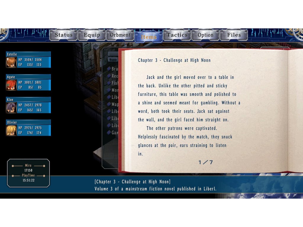 Příběh Estelle a Joshua končí v tomto poutavém vyprávění dvakrát větším než jehopředchůdce. Spojte se buď se Schera, nebo Agate na více než 70 hodinách základní hry, abyste zmařili rostoucí zlo, které ohrožuje Liberl.