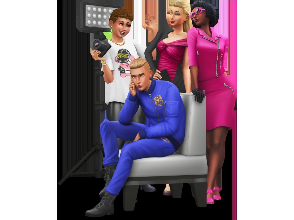 Moschino a kreativní ředitel Jeremy Scott oslavují vydání nejnovější kolekce „Moschino x The Sims Capsule Collection“ smodely inspirovanými The Sims a jejich konfekčními oděvy, a to včetně těch z minulých kolekcí.