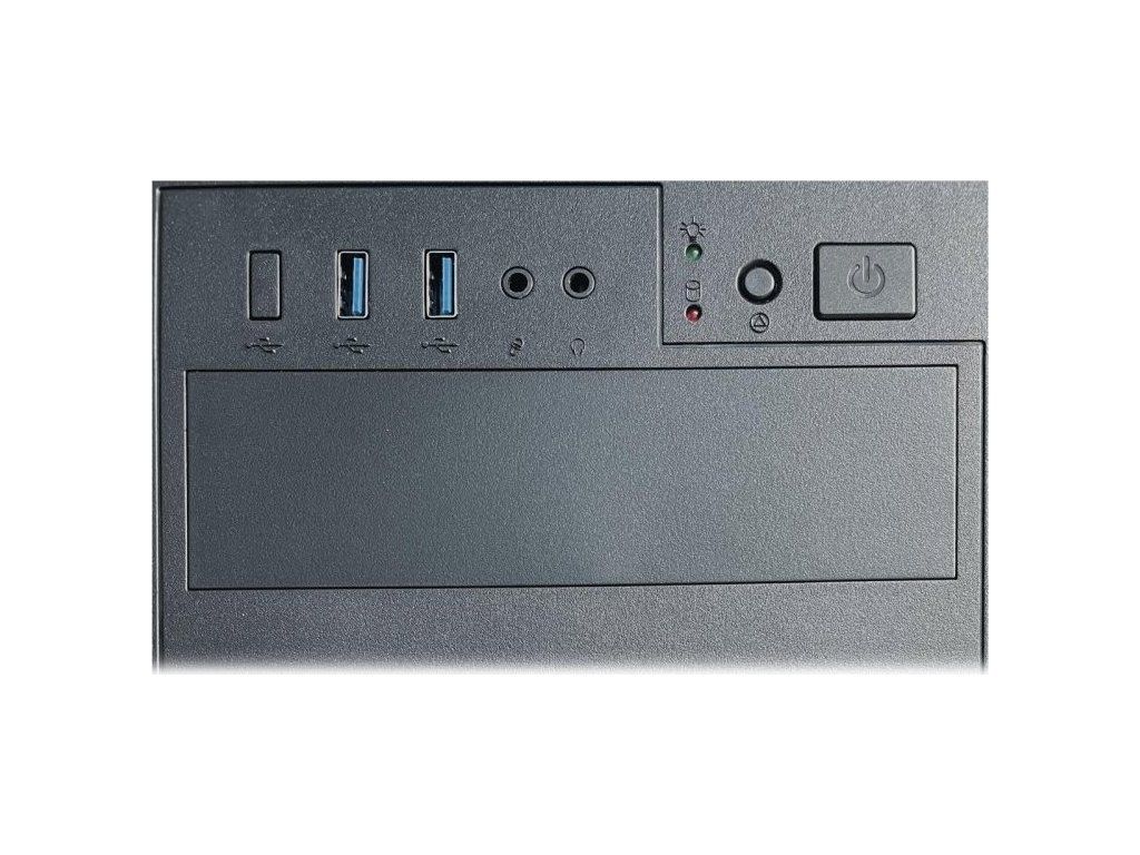 Počítačová skříň v provedení Micro tower nabízí tři 2,5" nebo dvě 3,5" pozice pro pevné a SSD disky. Na předním panelu jsou umístěny dva USB 3.0 porty, sluchátkový výstup a vstup pro mikrofon. Potěší také možnost osazení až třemi ventilátory. Ve skříni je dostatek prostoru pro chladič CPU do výšky až 110 mm a grafickou kartu o délce až 260 mm. Skříň je dodávána bez zdroje.
