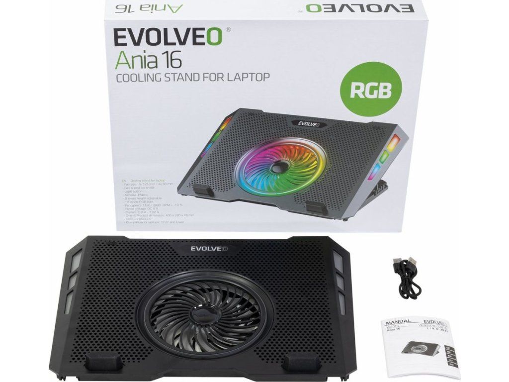 EVOLVEO Ania 16, chladicí podložka pod notebook, 5x ventilátor, RGB podsvícení