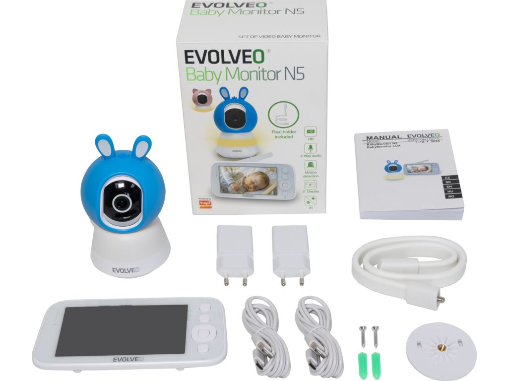 EVOLVEO Baby Monitor N5 - Set videochůvičky, modrá (PartNo: CAM-5-B)