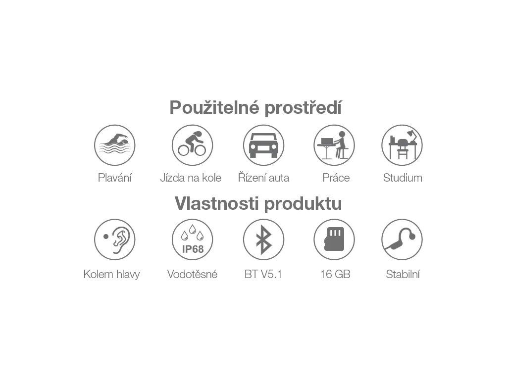Originální a patentovaná technologie umožňující užívat si poslech hudby nejenom při plavání. Sluchátka jsou vhodné i pro běh a další sporty, protože díky otevřené konstrukci slyšíte okolní zvuk.