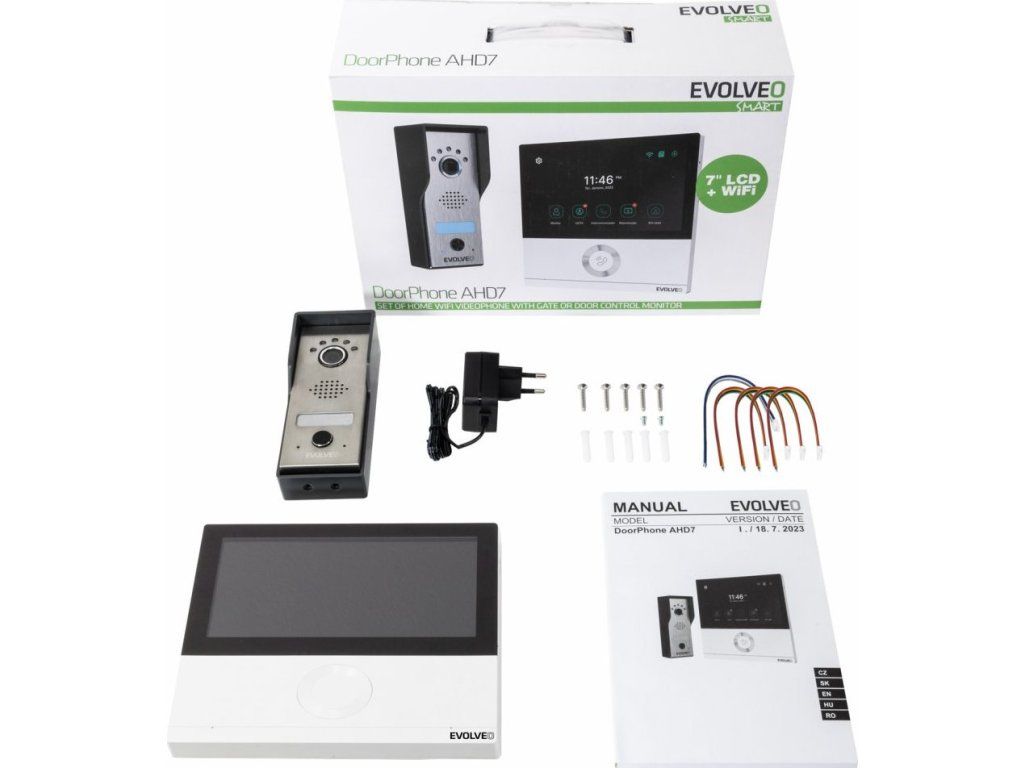 EVOLVEO DoorPhone AHD7, Sada domácího WiFi videotelefonu s ovládáním brány nebo dveří, bíly monitor