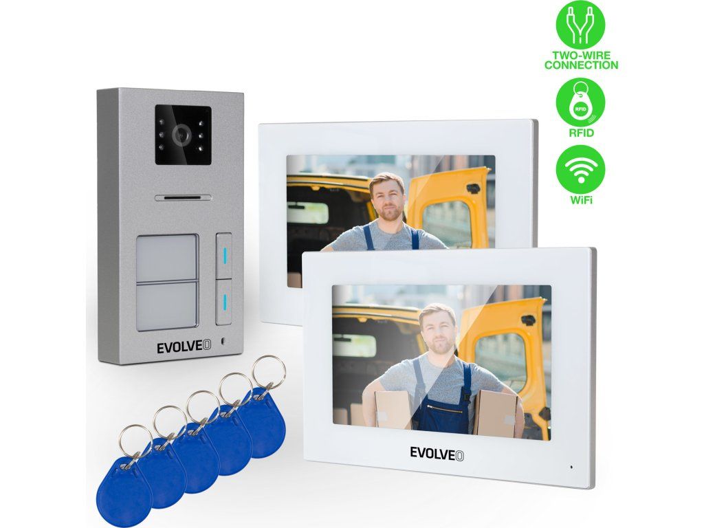 EVOLVEO DoorPhone AP2-2 drátový videotelefon pro dva byty s aplikací, bílý