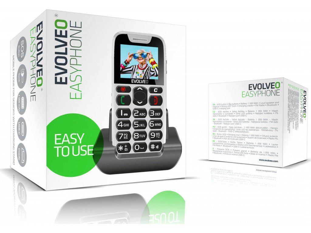 Telefon je dodáván s praktickým nabíjecím stojánkem, který zjednodušuje nabíjení baterie. Stačí telefon zasunout do stojánku a nabíjení se spustí automaticky, což ušetří čas a usnadní každodenní používání telefonu. Kapacita 1000 mAh Li-Ion baterie a výdrž až 8 dní zajistí, že telefon EVOLVEO EasyPhone nezradí, když ho nejvíce potřebujete.