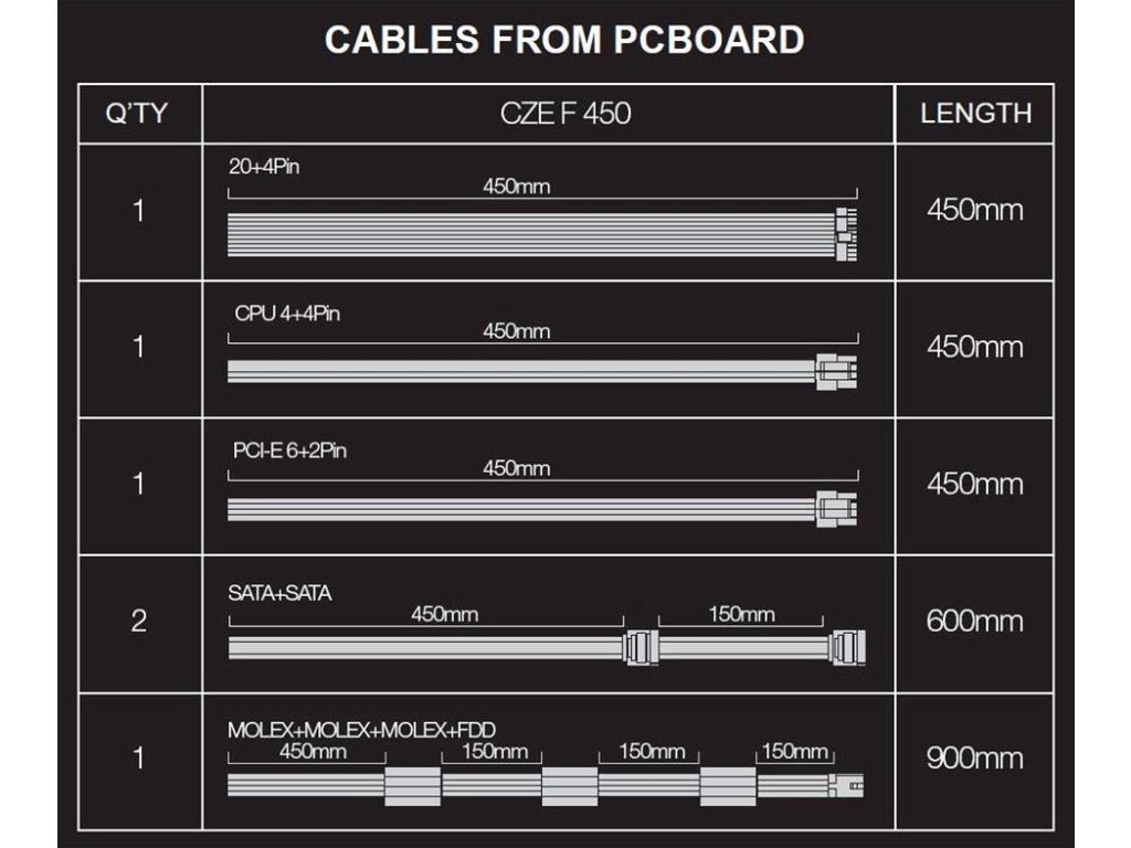 • 1x MOLEX, 450mm + MOLEX 150mm + MOLEX 150 mm + FDD 150 mm