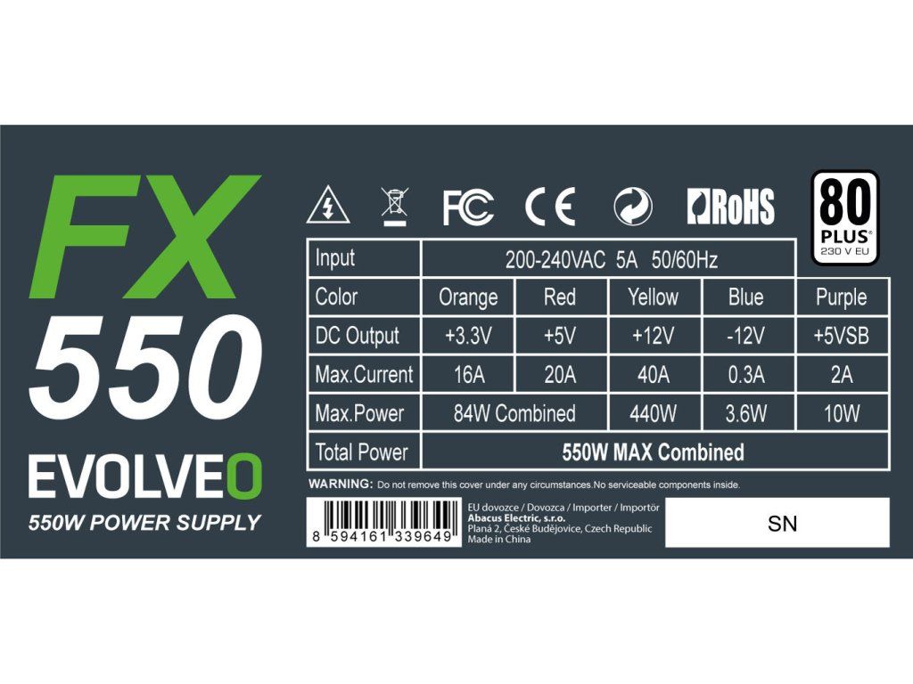 EVOLVEO FX 550/550W/ATX/80PLUS 230V EU/Bulk