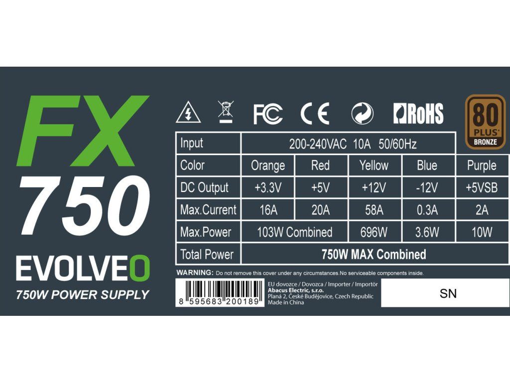 EVOLVEO FX 750, zdroj 750W ATX, 14cm, tichý, 80+, Bronze, záruka 3 roky