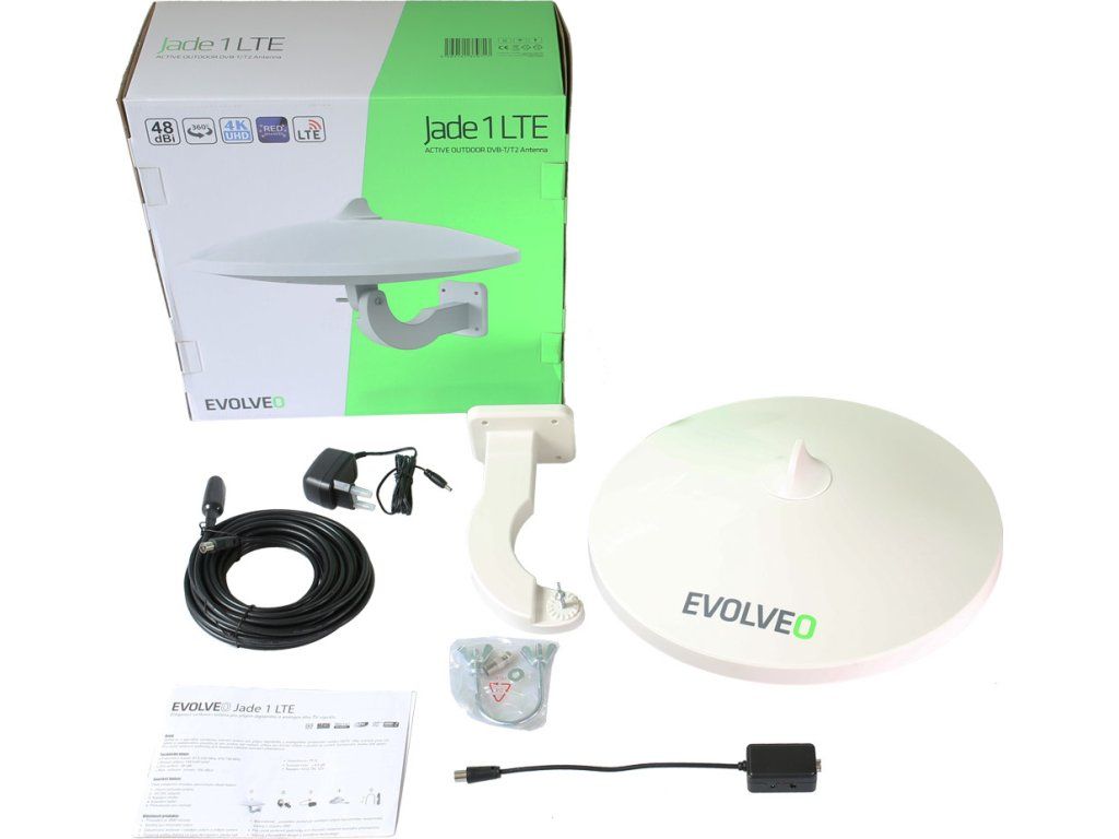 EVOLVEO Jade 1, aktivní venkovní anténa FM/DAB+/DVB-T2, filtr LTE,4G,5G