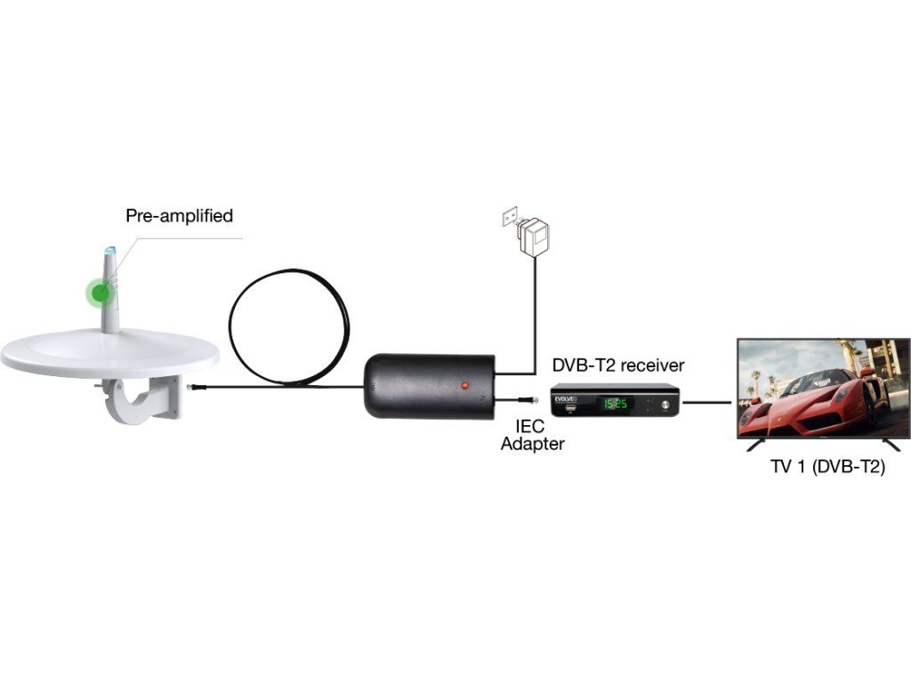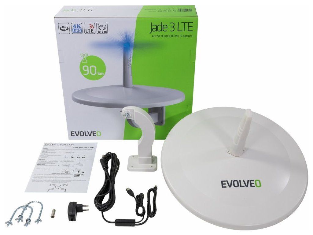 EVOLVEO Jade 3, aktivní venkovní anténa FM/DAB+/DVB-T2, filtr LTE,4G,5G