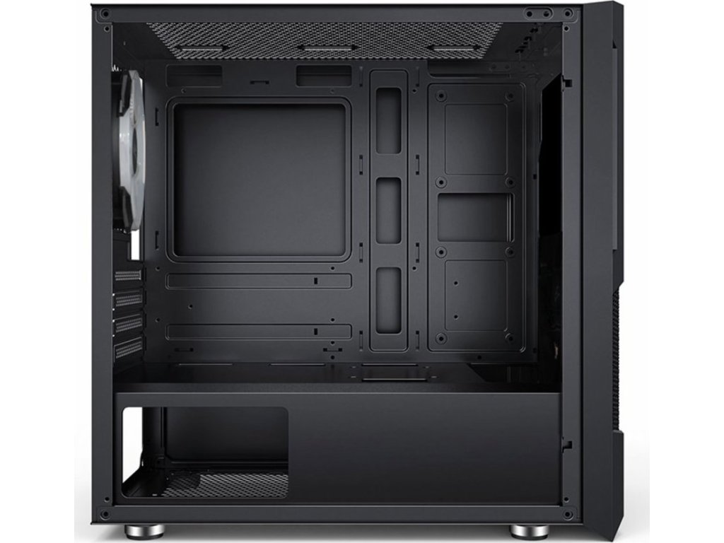 Herní mATX skříň s instalovanými RGB rainbow 120 mm ventilátoremy a bočnicí z temerovaného skla. Skříň je určená pro základní desky podporující platformu Intel i AMD. Mimo formátu mATX je kompatibilní i s formátem Mini ITX. Napájecí zdroj se umísťuje do dolní části skříně. Spodní mřížka je osazena vysouvacím prachovým filtrem. Ovládání ventilátorů je možné pomocí připojení k základní desce.