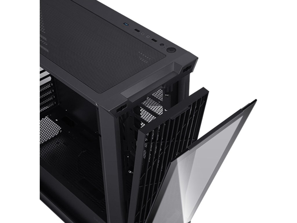 Hned na první pohled vás tato PC skříň zaujme stylovým průhledným provedením. Čelní panel i bočnice jsou vyrobeny z temperovaného skla, takže při pohledu na počítač můžete obdivovat světelnou show RGB ventilátorů nebo se na vlastní oči přesvědčit, že hardware šlape jak švýcarské hodinky. Použité bezpečnostní sklo o síle 4 mm má navíc i další výhodu – kdyby nedejbože došlo k nehodě, nezasype vás ostrými střepy, ale rozpadne se na neškodné drobné kousky.