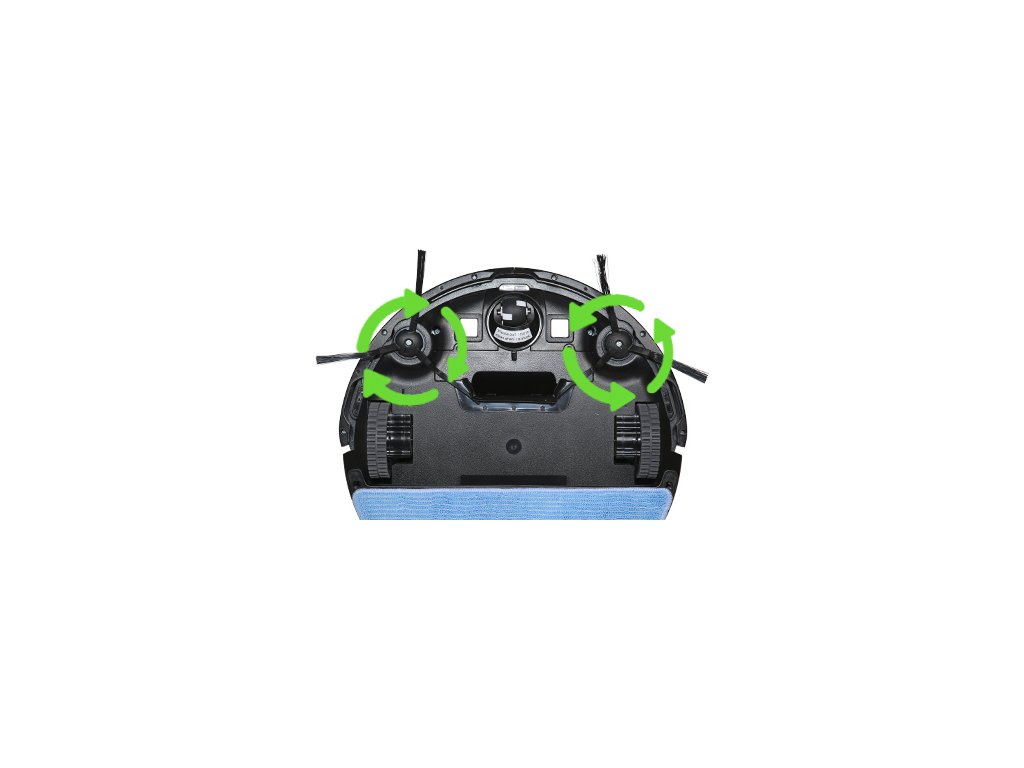 Díky přítomnosti bočního kartáčku vyčistí Robotrex H6 i místa okolo nábytku, podél stěn, rohy místností a jiná těžko dostupná místa. Dvojice proti sobě rotujících kartáčů, které jsou umístěny v čisticí hlavě robota velmi efektivně sbírají prach i velké nečistoty z podlahy.