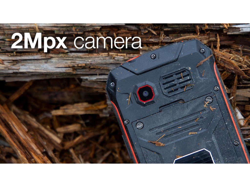 Součástí výbavy odolného telefonu je 2 Mpx fotoaparát, výkonná LED svítilna nebo vestavěné FM rádio s integrovanou anténou a automatickým laděním stanic. Z další výbavy můžete využít například kalendář, budíky nebo kalkulačku.