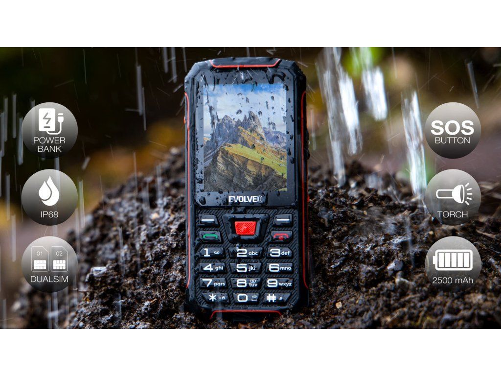 • EVOLVEO StrongPhone W4, vodotěsný odolný Dual SIM telefon, černo-červený (PartNo: SGP-W4-BR)