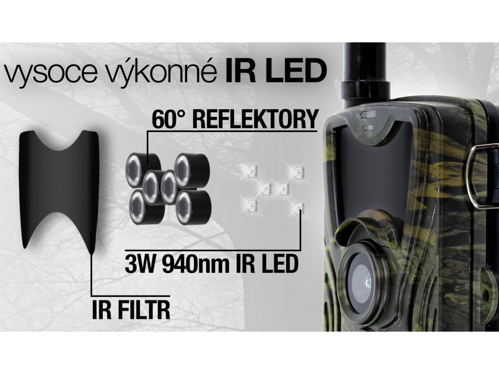 Díky IR lED s technologií 940nm jsme docílili o 30% lepšího osvitu noční scény, LED o výkonu 18W jsou osazeny reflektorovou čočkou s úhlem 60°. IR se spouštějí automaticky a to jak pro režim fotografie tak i pro noční video.