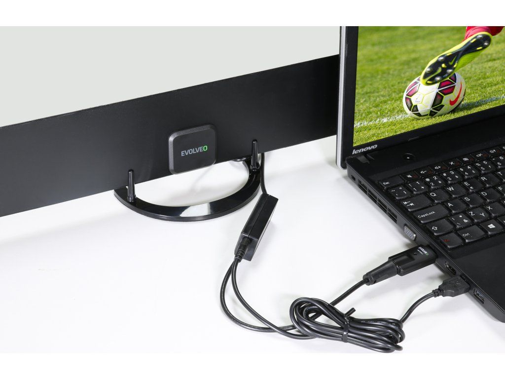 Elegantní pokojová anténa pro příjem digitální TV. Zesilovač antény lze napájet díky USB kabelu dvěma způsoby. Napájení pomocí adaptéru 230V a dále napájení z USB konektoru. Druhý způsob ocení uživatel, který chce sledovat TV např. na NB pomocí USB tuneru. Anténu lze přilepit sado 3M oboustranných pásek na zeď, nábytek, nebo umístit do podstavce.