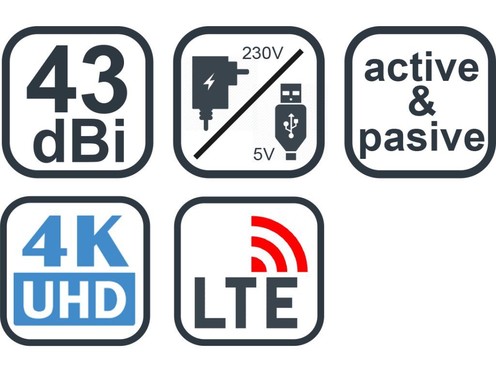 • Zesilovač, zisk 43 dBi , filtr LTE, 4G, 5G