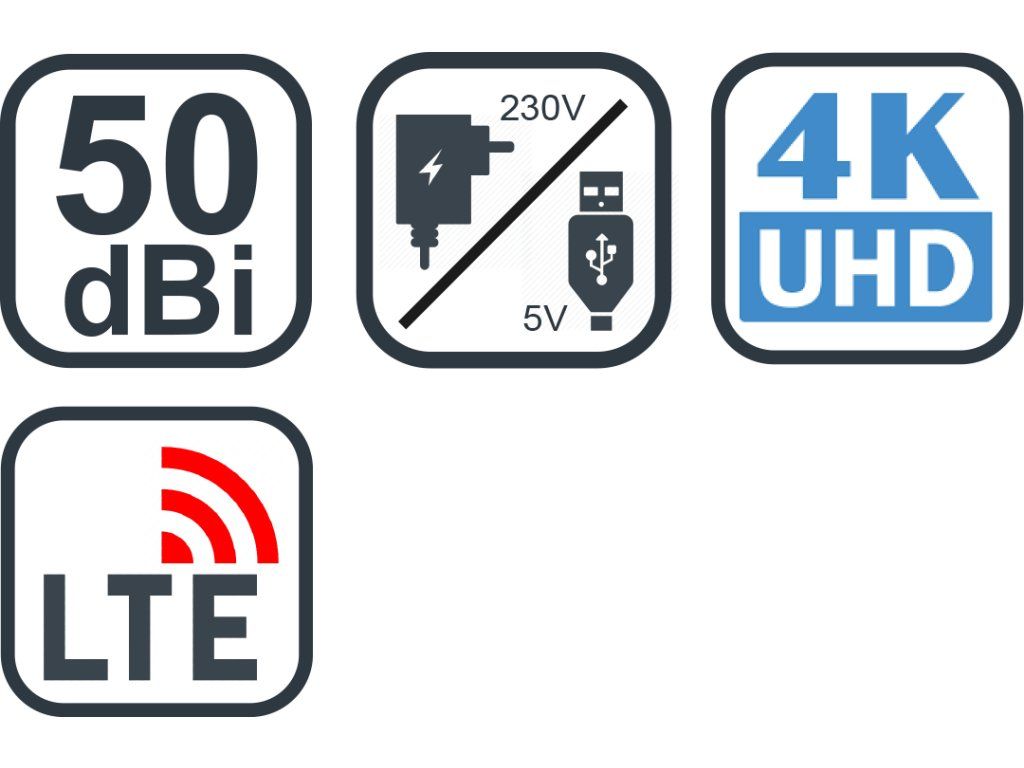 • Zesilovač, zisk 50 dBi, filtr LTE, 4G, 5G