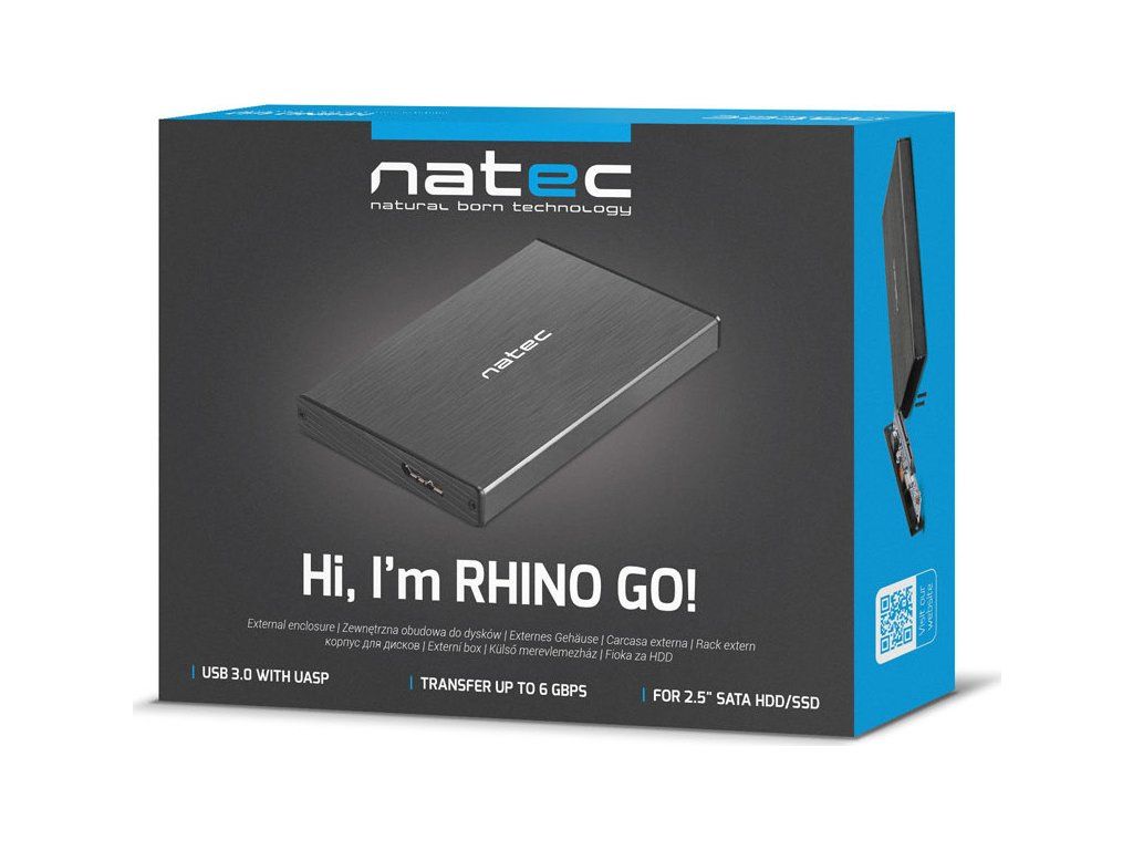 Externí box pro HDD Natec Rhino GO je určen pro 2,5" disky, který nabízí rychlý přenos dat do 6 Gbps a chrání disk před poškozením.