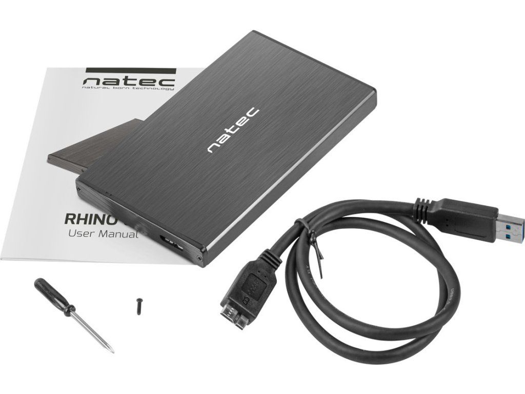 Externí box pro HDD 2,5" USB 3.0 Natec Rhino Go, černý, hliníkové tělo