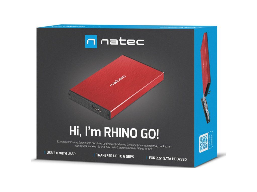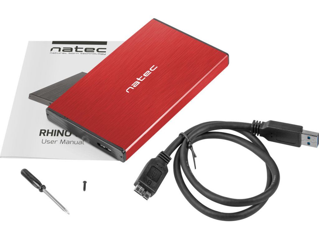 Externí box pro HDD 2,5" USB 3.0 Natec Rhino Go, červený, hliníkové tělo