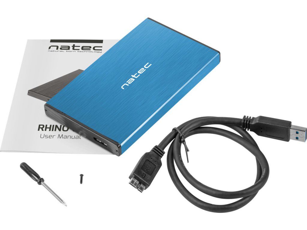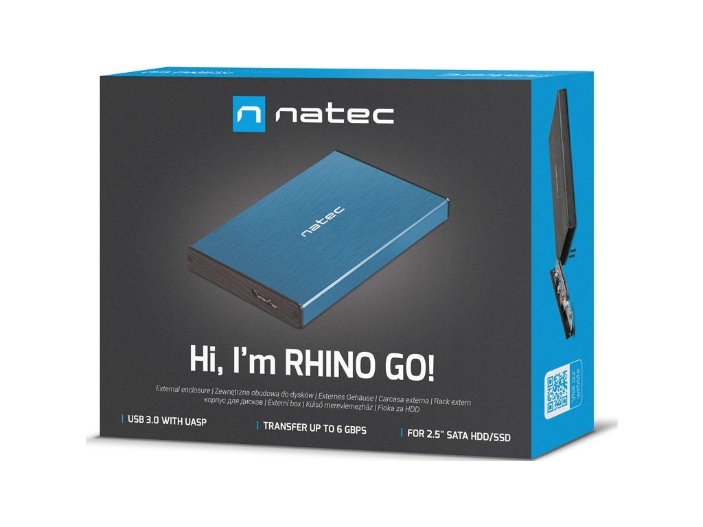 Externí box pro HDD 2,5" USB 3.0 Natec Rhino Go, modrý, hliníkové tělo