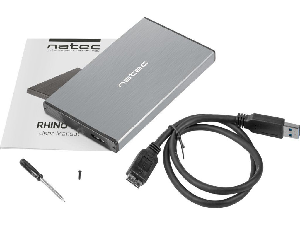 Externí box pro HDD 2,5" USB 3.0 Natec Rhino Go, šedý, hliníkové tělo