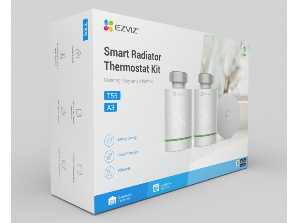 Sada obsahuje dvě inteligentní termostatické hlavice T55 pro přímou regulaci vytápění a centrální jednotku A3-R200 pro propojení s chytrou domácností. Hlavice se jednoduše namontuje na radiátorový ventil a umožňuje přesné nastavení teploty s automatickými funkcemi pro maximální úsporu energie.