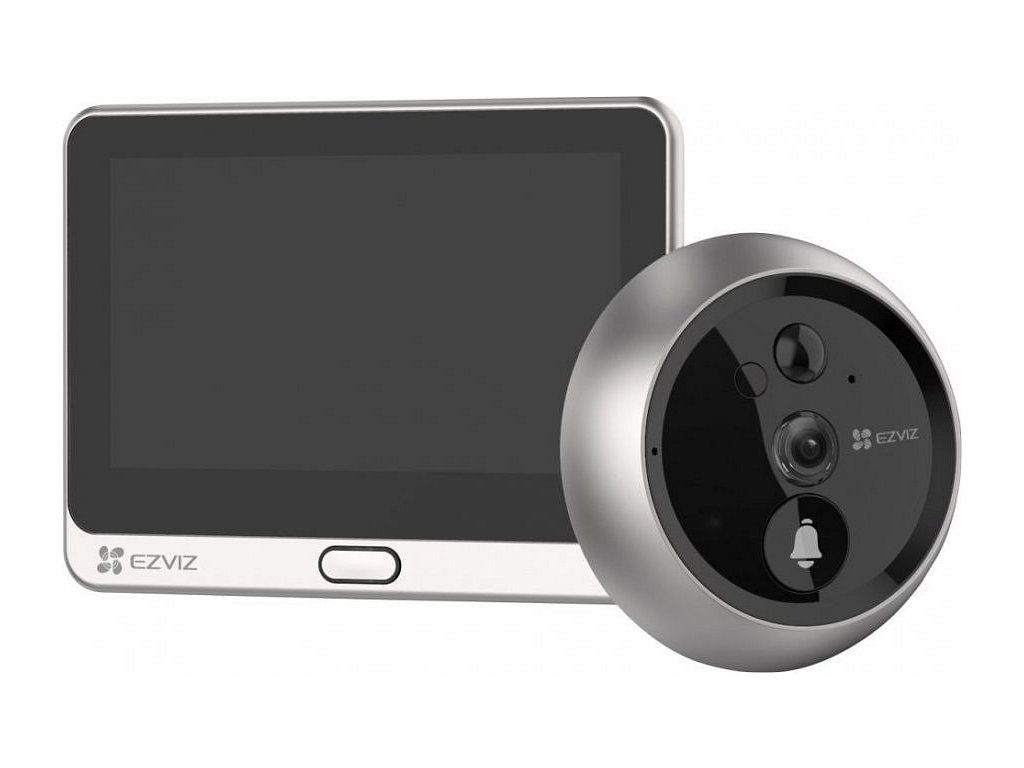 EZVIZ chytrý dveřní videotelefon DP2C/ Wi-Fi/ kamera 1080p/ H.265/ kukátko/ zvonek/ IR do 5 m/ PIR/ LCD 4,3"/ stříbrný