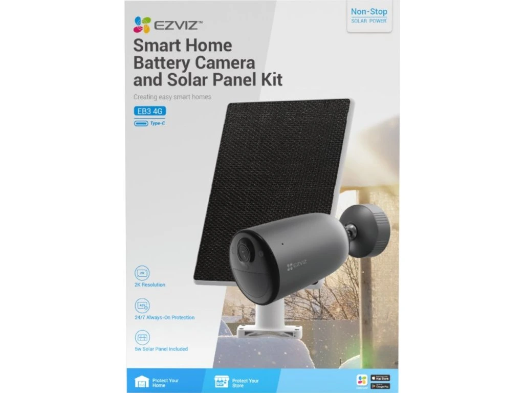 Venkovní bezdrátová IP kamera s PIR čidlem pro detekci pohybu nabízí snímač 1/2,8" CMOS s rozlišením 3 Mpx, který je schopný snímat video v rozlišení 2304 × 1296 při 15 fps. Pro případ zhoršených světelných podmínek je přítomen IR přísvit do vzdálenosti 15 m a bílý LED přísvit pro pořizování barevných záznamů v noci. Komprese H.265/H.264 snižuje nároky na přenos dat a úložiště. Natočené záznamy je možné ukládat na microSD kartu do kapacity až 512 GB, nebo odesílat na cloudové úložiště (na základě předplatného). Součástí kamery je integrovaný reproduktor a mikrofon, který umožní kvalitní oboustrannou komunikaci. Aktivní zastrašení v podobě stroboskopického světla a zvukového alarmu pak varuje případné narušitele. Propojení kamery pomocí aplikace v mobilním zařízení umožní pohodlný vzdálený přístup, pořizování záznamů či fotografií nebo upozornění v případě detekce pohybu. Mezi další užitečné funkce patří například rozpoznávání lidské postavy a vozidla pomocí umělé inteligence či kompatibilita s hlasovými asistenty Google Assistant a Amazon Alexa. Samozřejmostí je voděodolný kryt dle IP65. Připojení lze jednoduše realizovat bezdrátově pomocí 4G/LTE sítě. Napájení zajišťuje dobíjecí baterie s kapacitou 5200 mAh, kterou lze dobíjet také pomocí solárního panelu EZVIZ (součástí balení).