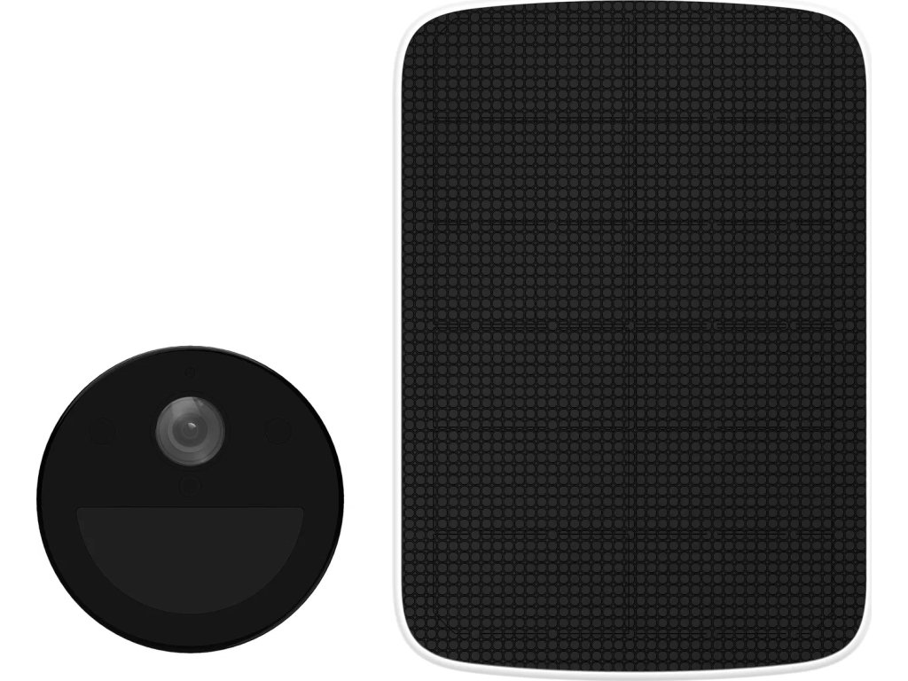 Součástí balení je solární panel, napájecí kabel, šroubovací základna, nastavitelný držák (pro solární panel), 2× sada šroubů a 2× vrtací šablona.