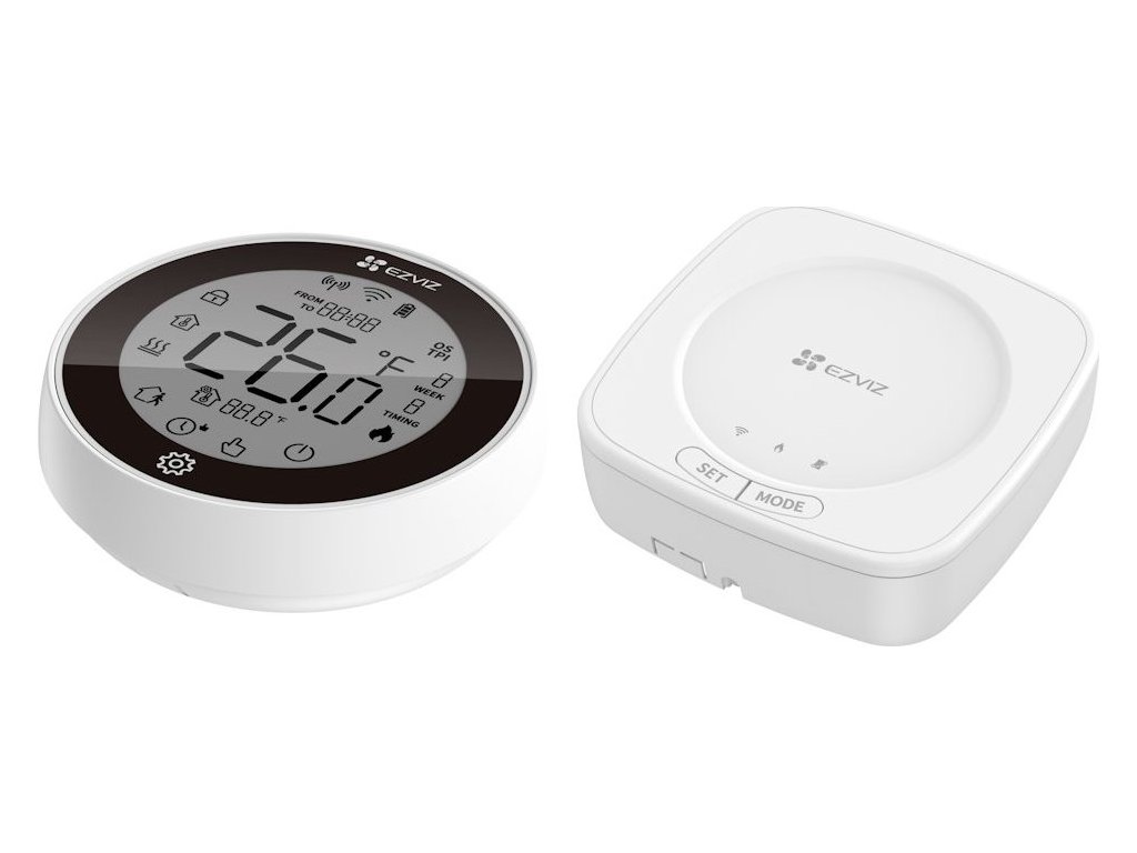 Sada T56 Smart Thermostat Kit kombinuje termostat T56T s domácí bránou T56G pro přesné řízení teploty kotle a zajištění komfortního vnitřního klimatu. Systém je navržen pro snadnou instalaci a intuitivní ovládání s možností vzdáleného řízení přes mobilní aplikaci EZVIZ.