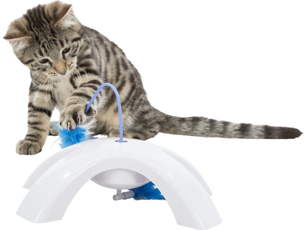 - motorek otáčí hračkou dokola a střapec provokuje kočku k lovu