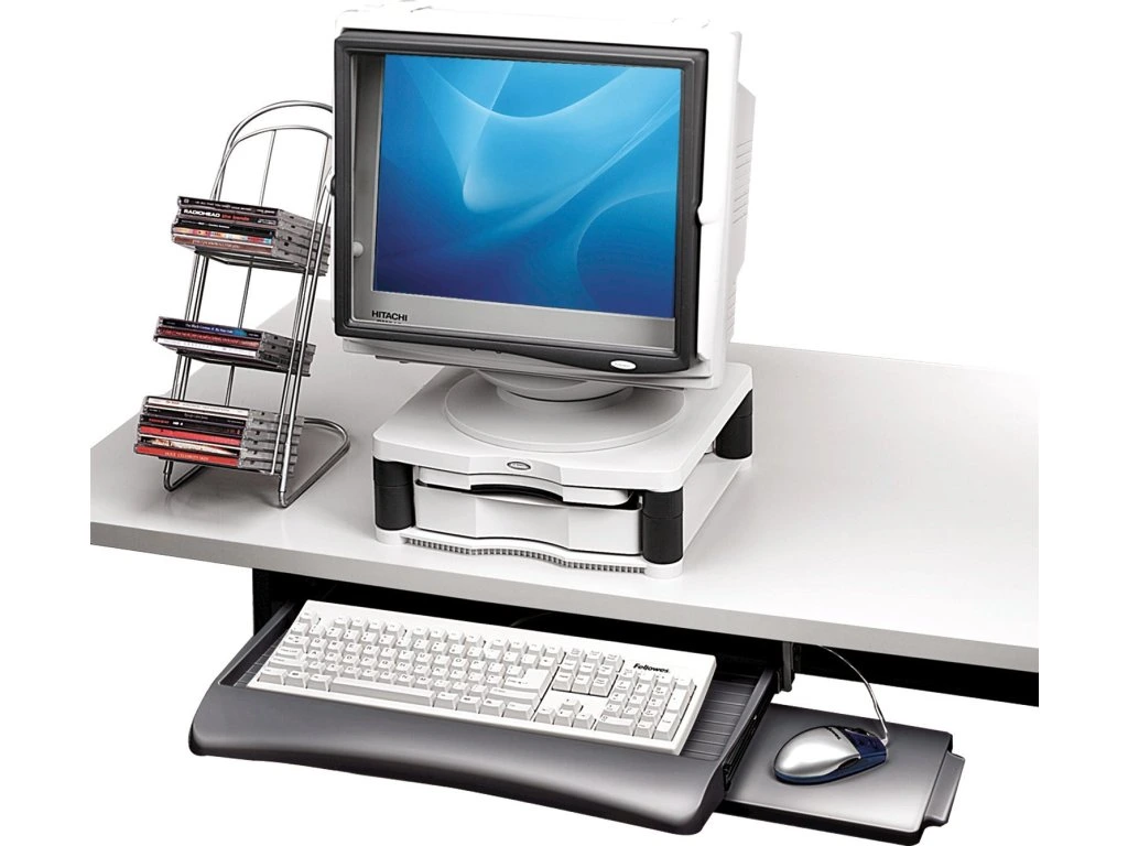 Používáním držáku klávesnice a myši Fellowes předcházíte bolesti zápěstí. Instalace pod pracovní desku psacího nebo obyčejného stolu umožňuje získat dodatečný využitelný prostor. Vhodné do kanceláře i domácnosti. Usnadňuje organizaci věcí na pracovním stole.