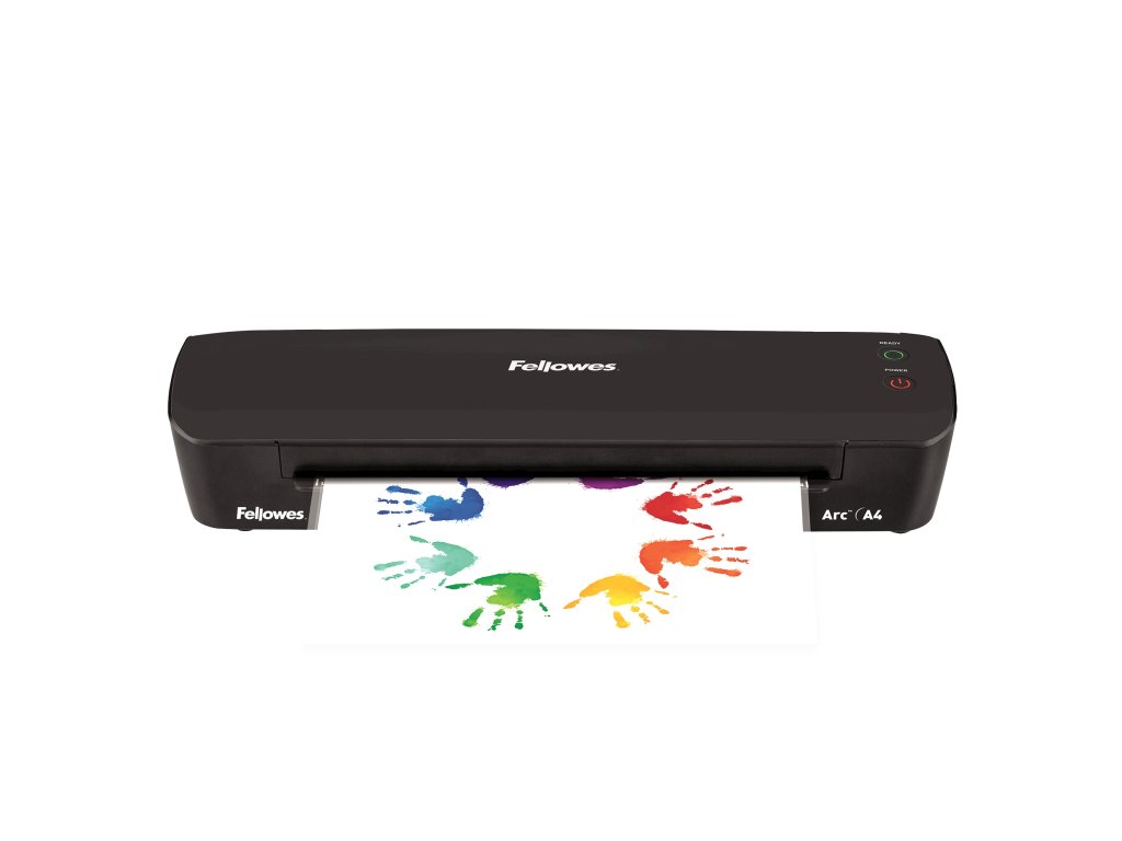 Fellowes ARCStolní laminátor umožňuje laminování za tepla ve formátu A4. Je určený pro příležitostnou laminaci doma nebo v domácí kanceláři. Vyznačuje se snadnou obsluhou a žádnými dalšími nastaveními. Pokud se laminátor nepoužívá déle než 30 minut, funkce Auto Shut Off jej automaticky vypne. Vybaven je též manuálním zpětným chodem pro případné zpětné vysunutí laminovaného dokumentu.
